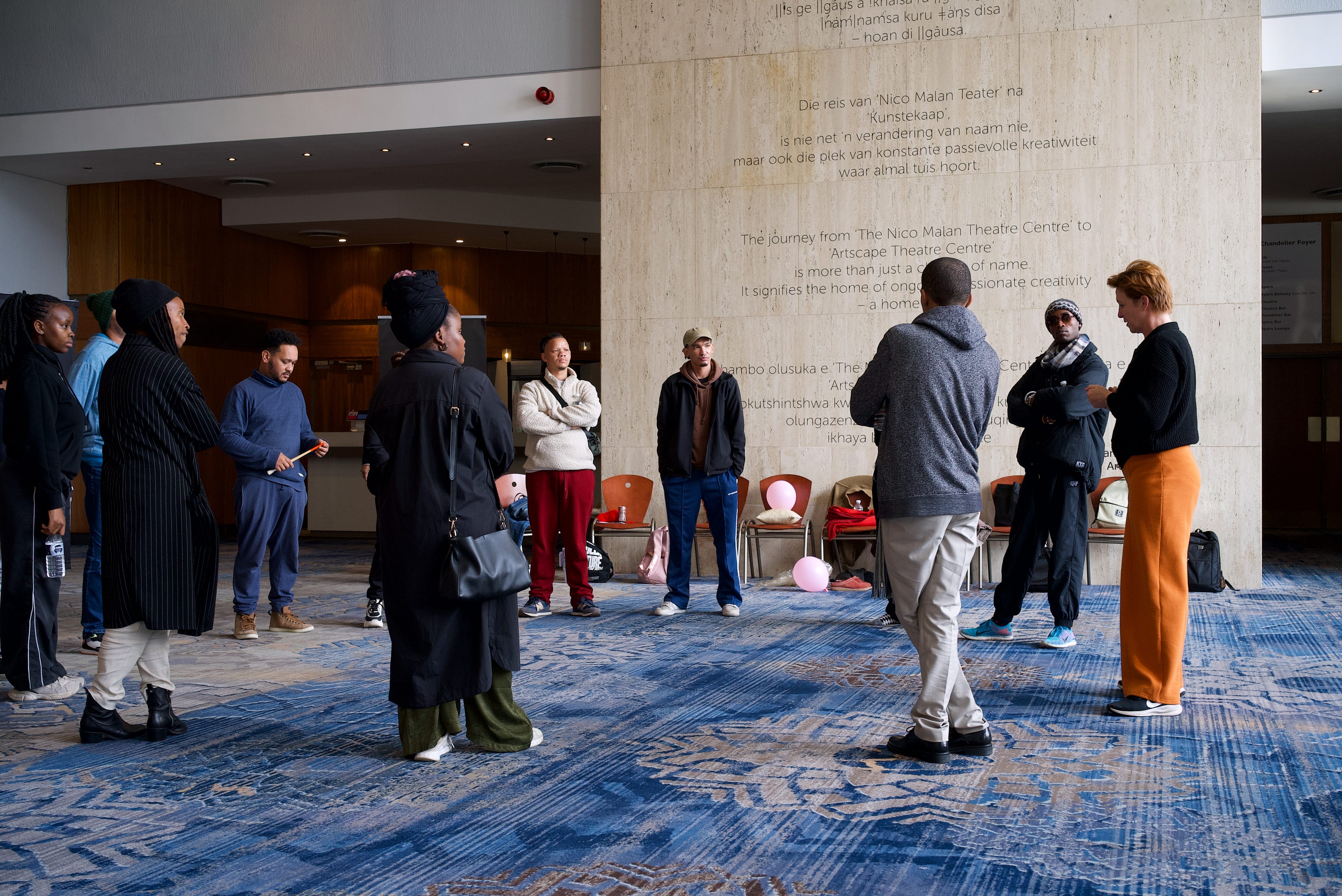 A recent workshop focusing on Live Art/Performance Art was conducted by artists Carin Bester and Qondiswa James at the Artscape Theatre in July. The workshop invitation was put out via an open call, organised via the Suidoosterfees with the support of the Festival Enterprise Catalyst and The Jobs Fund. What was unique about the workshop is that it was open to the public – which is quite rare. A group of fourteen interested members of the public attended, made up of inexperienced and experienced creatives.